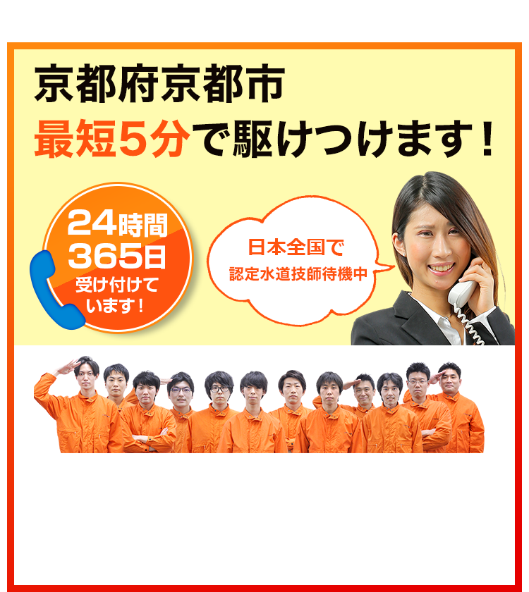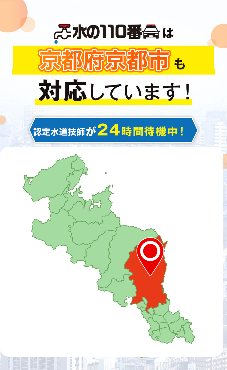 京都市での水道修理・トイレつまり、水漏れを、効率的な作業でコストを削減し、経済的な価格で提供。京都市の皆様に、手頃な価格で高品質なサービスをお届けします。